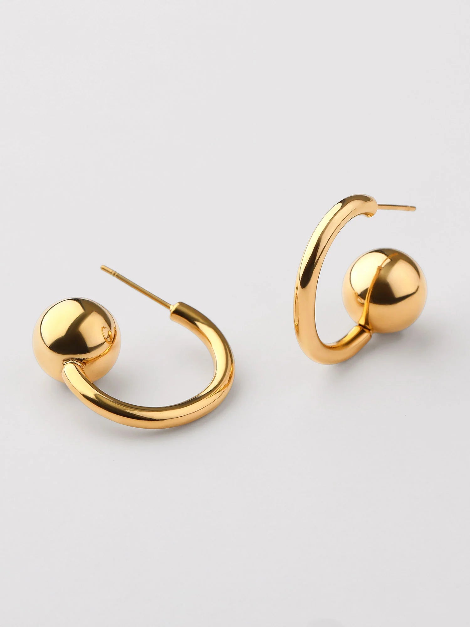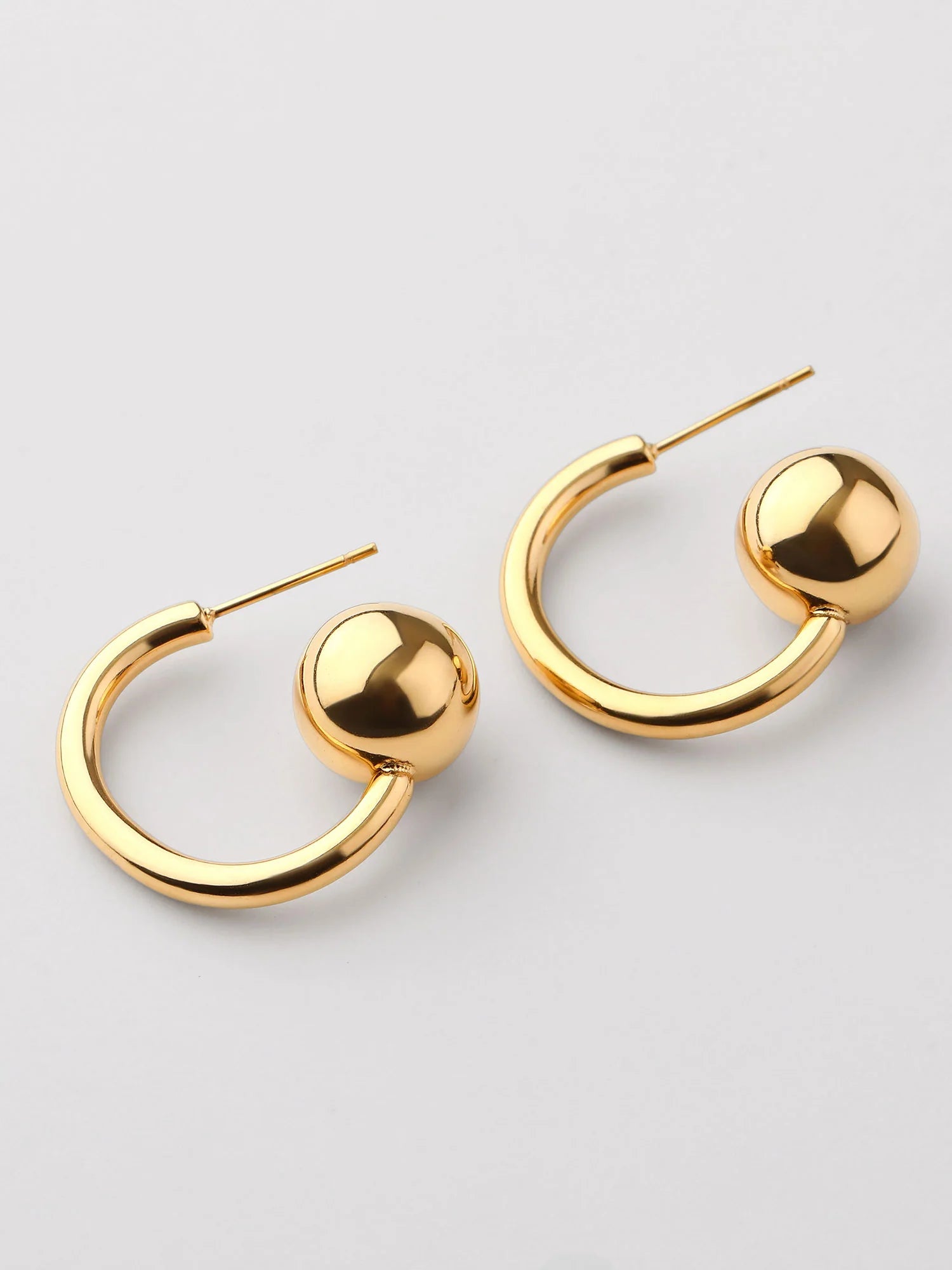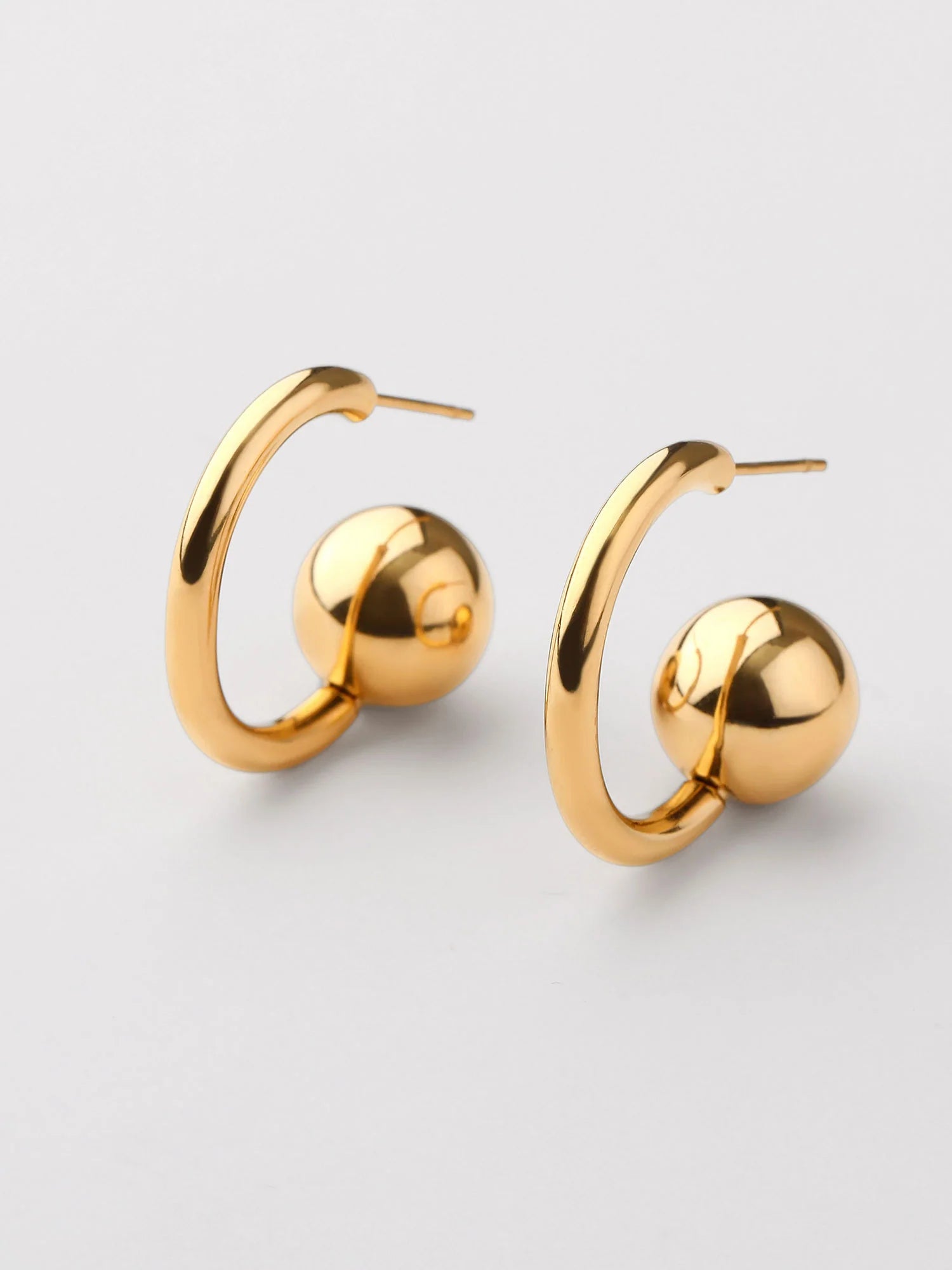 Idealny dodatek do każdej stylizacji! Tradycyjne koła ozdobione kulką - forma, która wchodzi na zupełnie nowy poziom. Oryginalny akcent przyciągnie każde spojrzenie i doda blasku Twojej twarzy. Klasyka w nowym wydaniu, która nigdy nie zawiedzie. Wykonane ze stali chirurgicznej pozłacanej 14k złotem. Odporne na wodę i hipoalergiczne.