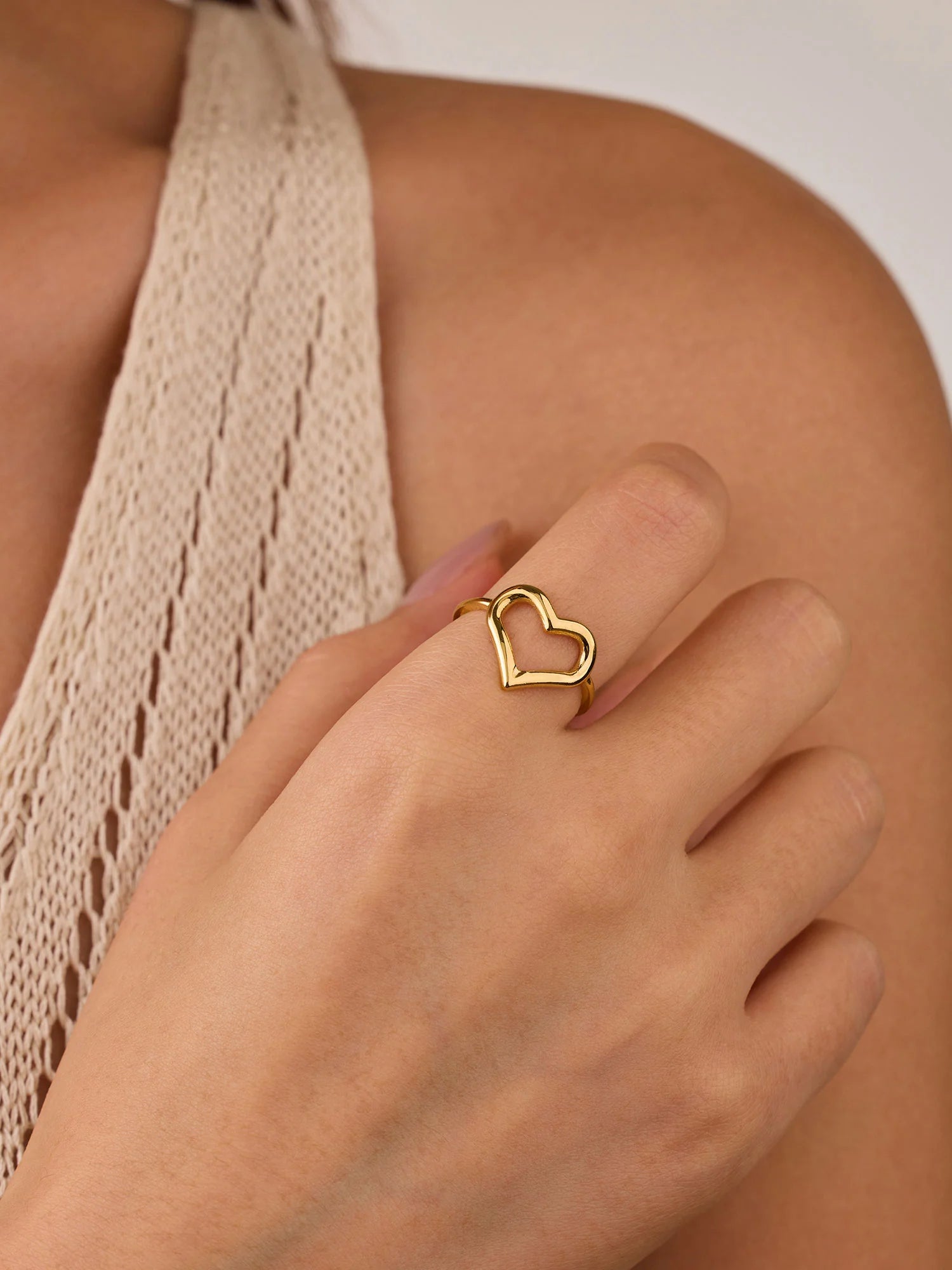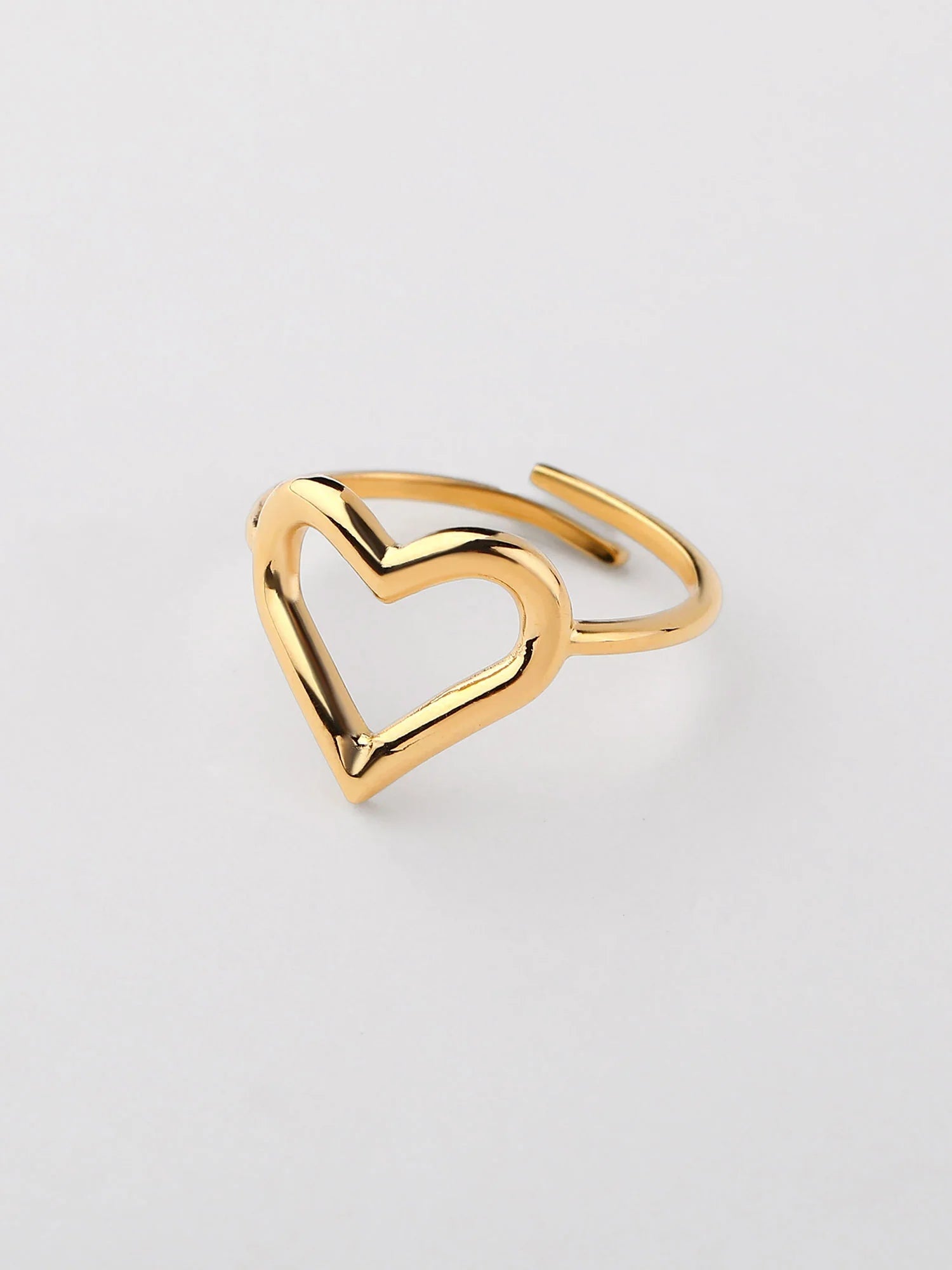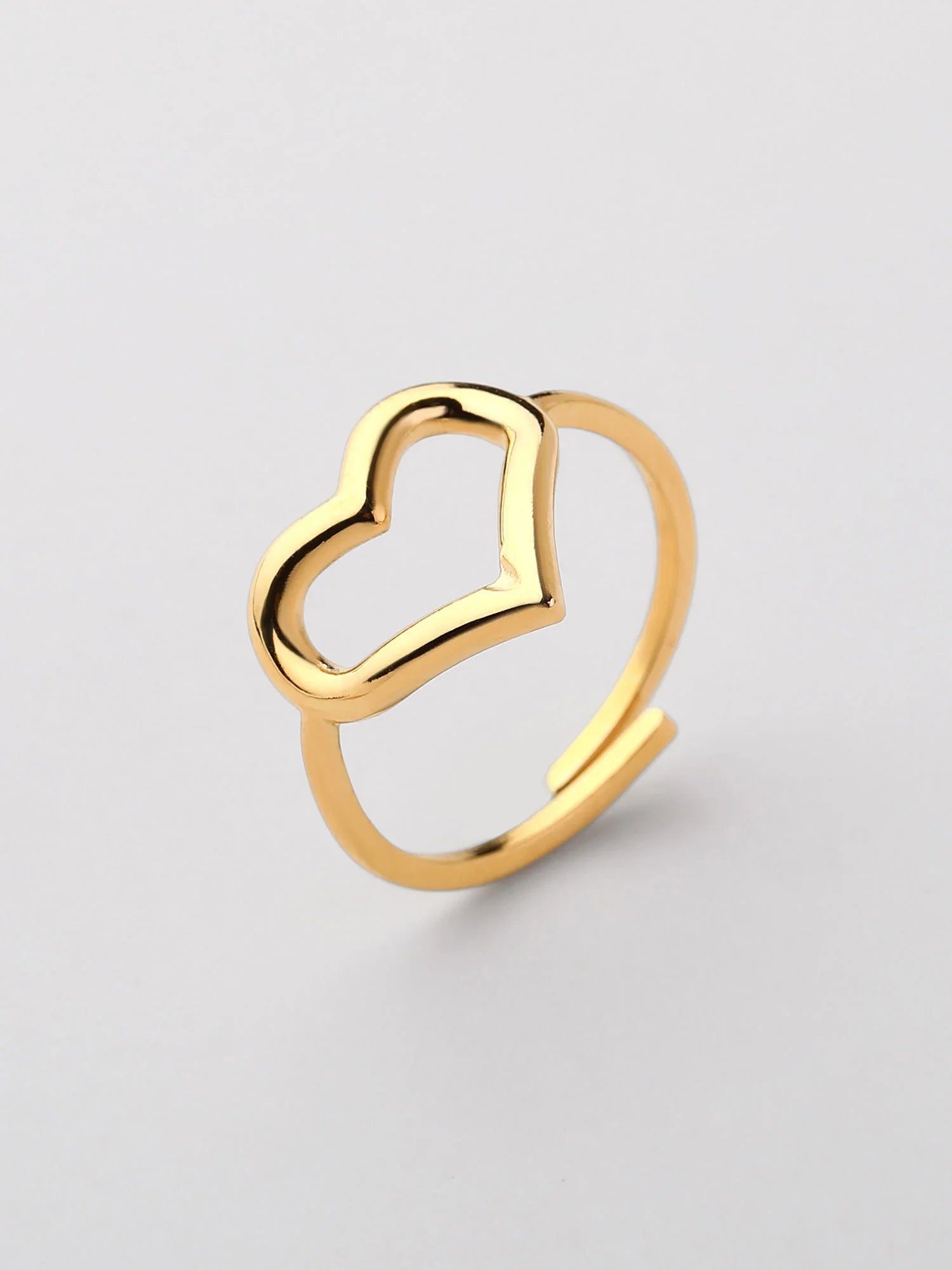Pierścionek z serduszkiem. Uroczy akcent, obok którego Ciężko przejść obojętnie! Pasuje nie tylko do romantycznych, ale też tych casualowych i wyjątkowych stylizacji. Regulując obwód możesz dopasować go idealnie do siebie. Wykonany ze stali chirurgicznej pozłacanej 14k złotem. Odporny na wodę i hipoalergiczny.